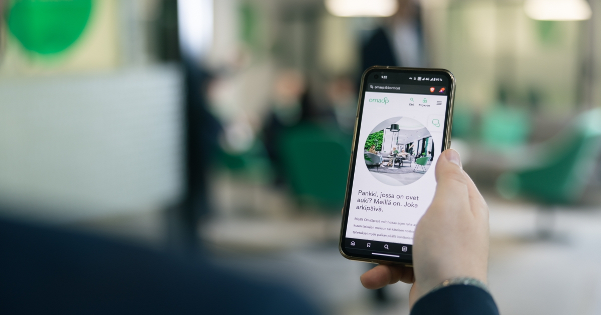 Meillä raha-asioiden hoitaminen on helppoa myös digitaalisesti. Verkkopankissa ja OmaMobiilissa hoidat maksamiseen, tileihin ja kortteihin, lainoihin sekä varallisuuteen liittyvät asiat ajasta ja paikasta riippumatta. Jos tarvitset apua, tavoitat meidät myös verkkoviestillä ja chatissa, joissa sinua palvelee aina ihminen. Voit aidosti valita, miten meillä asioit.